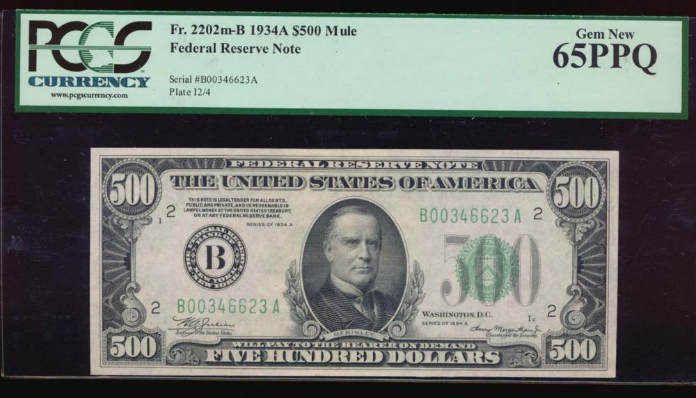 One 1934A $500 New York Federal Reserve Note PCGS 65PPQ.