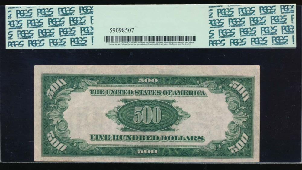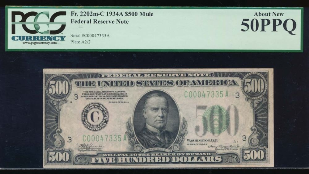 One 1934A $500 Philadelphia Federal Reserve Note PCGS 50PPQ.