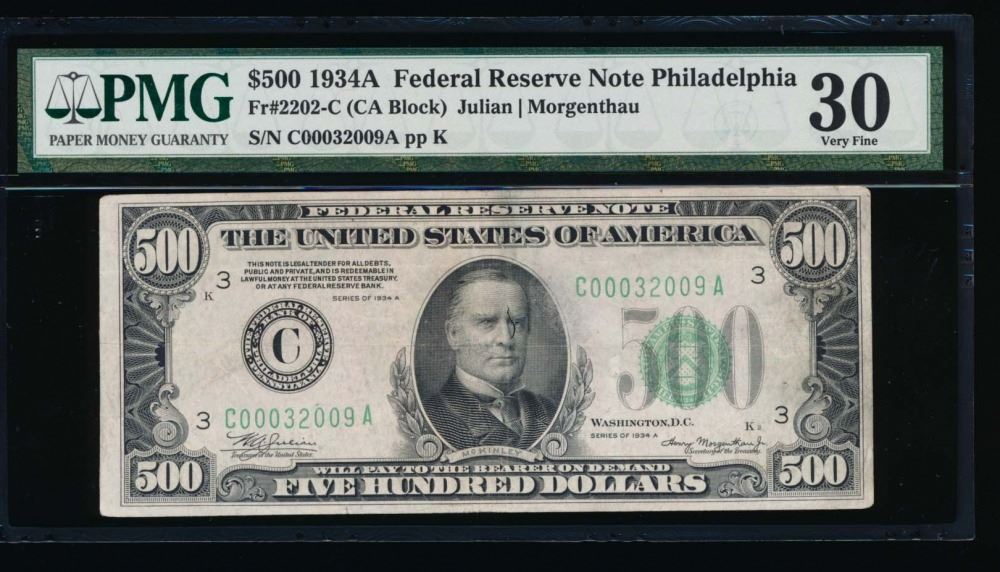One 1934A $500 Philadelphia Federal Reserve Note PMG 30.
