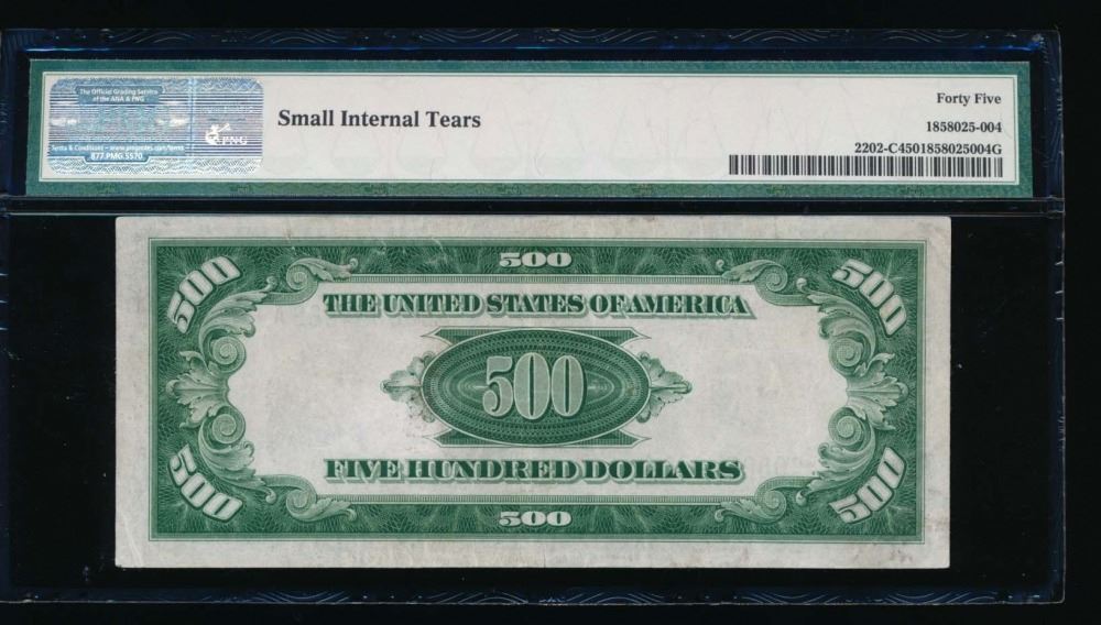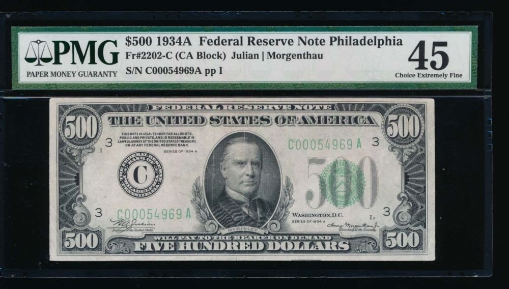 One 1934A $500 Philadelphia Federal Reserve Note PMG 45.