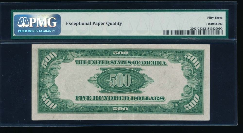 One 1934A $500 Philadelphia Federal Reserve Note PMG 53EPQ.