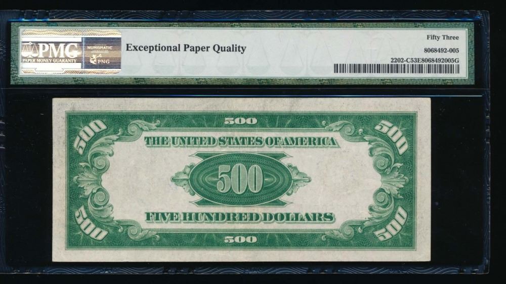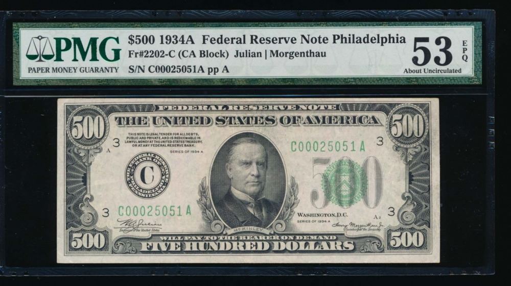 One 1934A $500 Philadelphia Federal Reserve Note PMG 53EPQ.