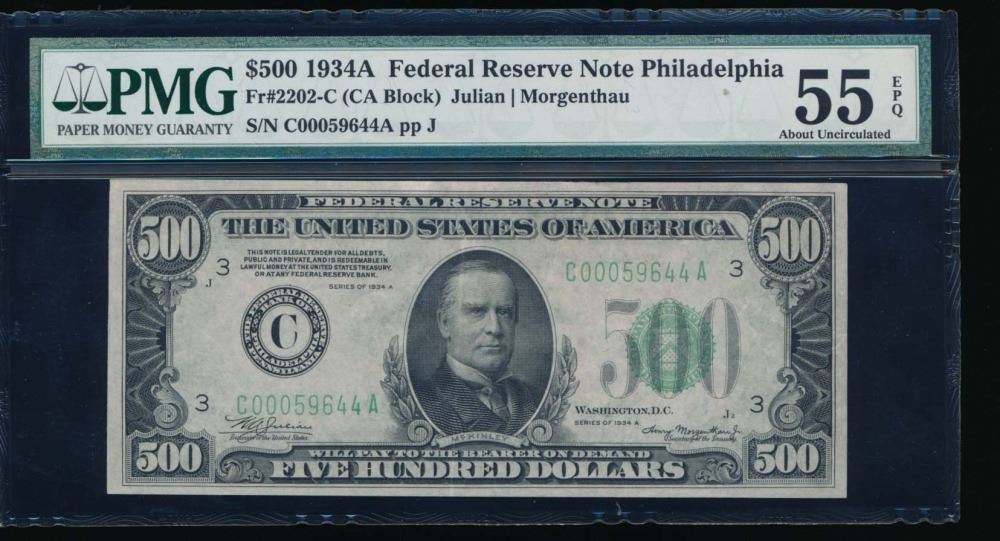 One 1934A $500 Philadelphia Federal Reserve Note PMG 55EPQ.