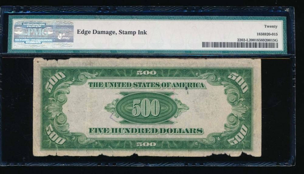 One 1934A $500 San Francisco Federal Reserve Note PCGS 20.
