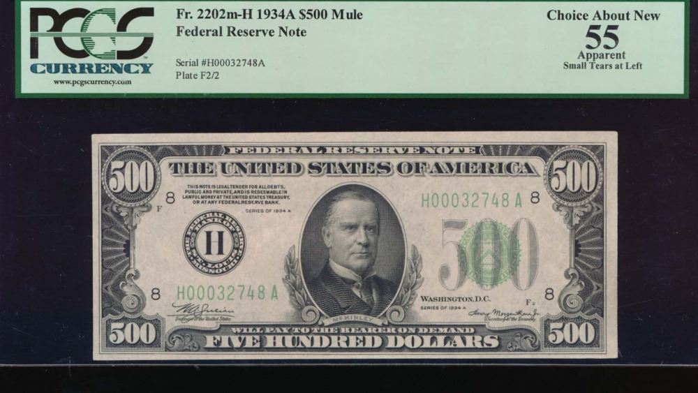 One 1934A $500 St Louis Federal Reserve Note PCGS 55.