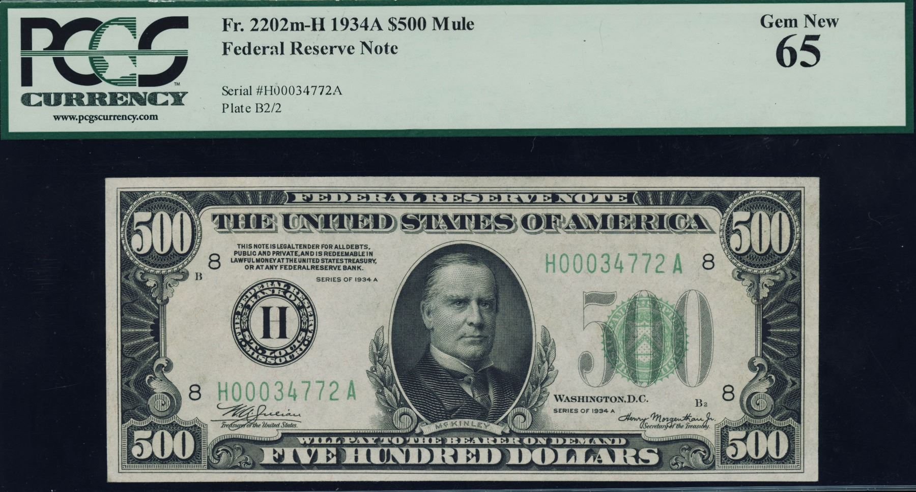 One 1934A $500 St Louis Federal Reserve Note PCGS 65.