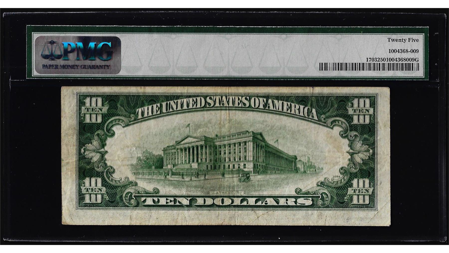 One 1934B $10 Silver Certificate Note Fr.1703 PMG Very Fine 25. PMG Certified.