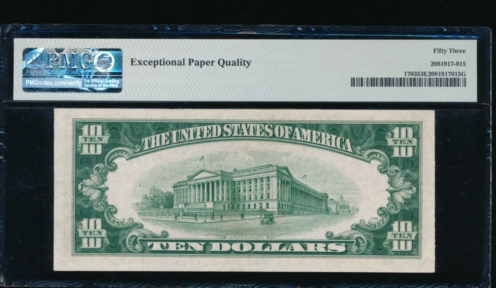One 1934B $10 Silver Certificate PMG 53EPQ.
