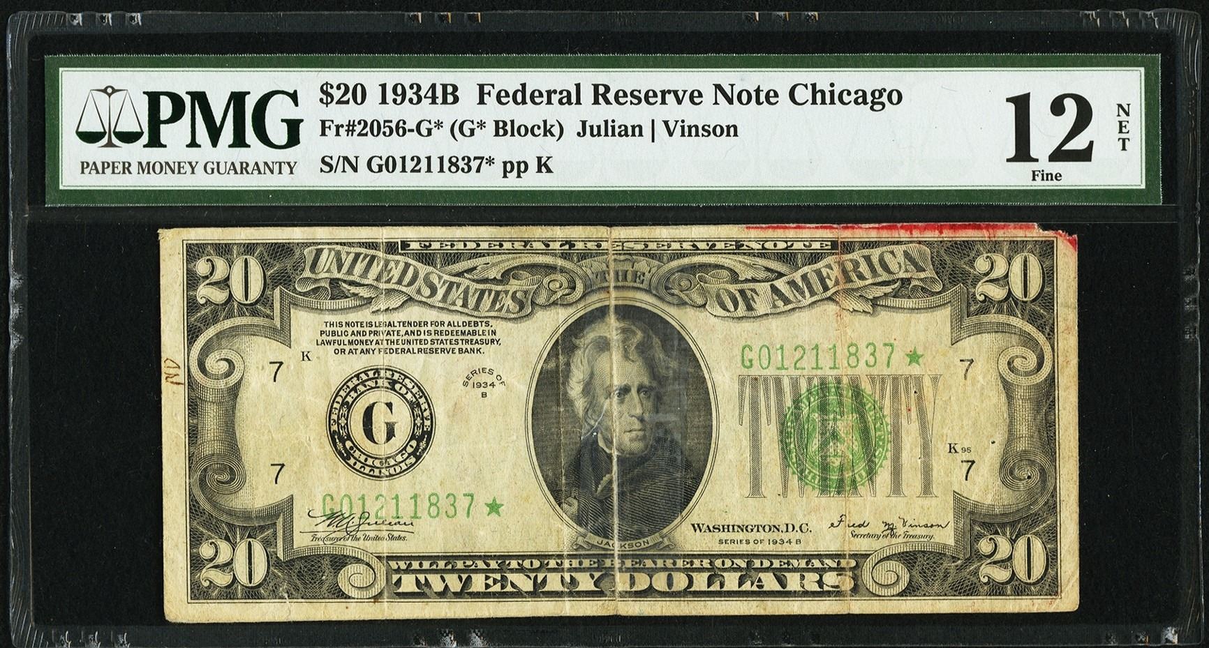 One 1934B $20 Chicago Federal Reserve STAR Note PMG 12NET.