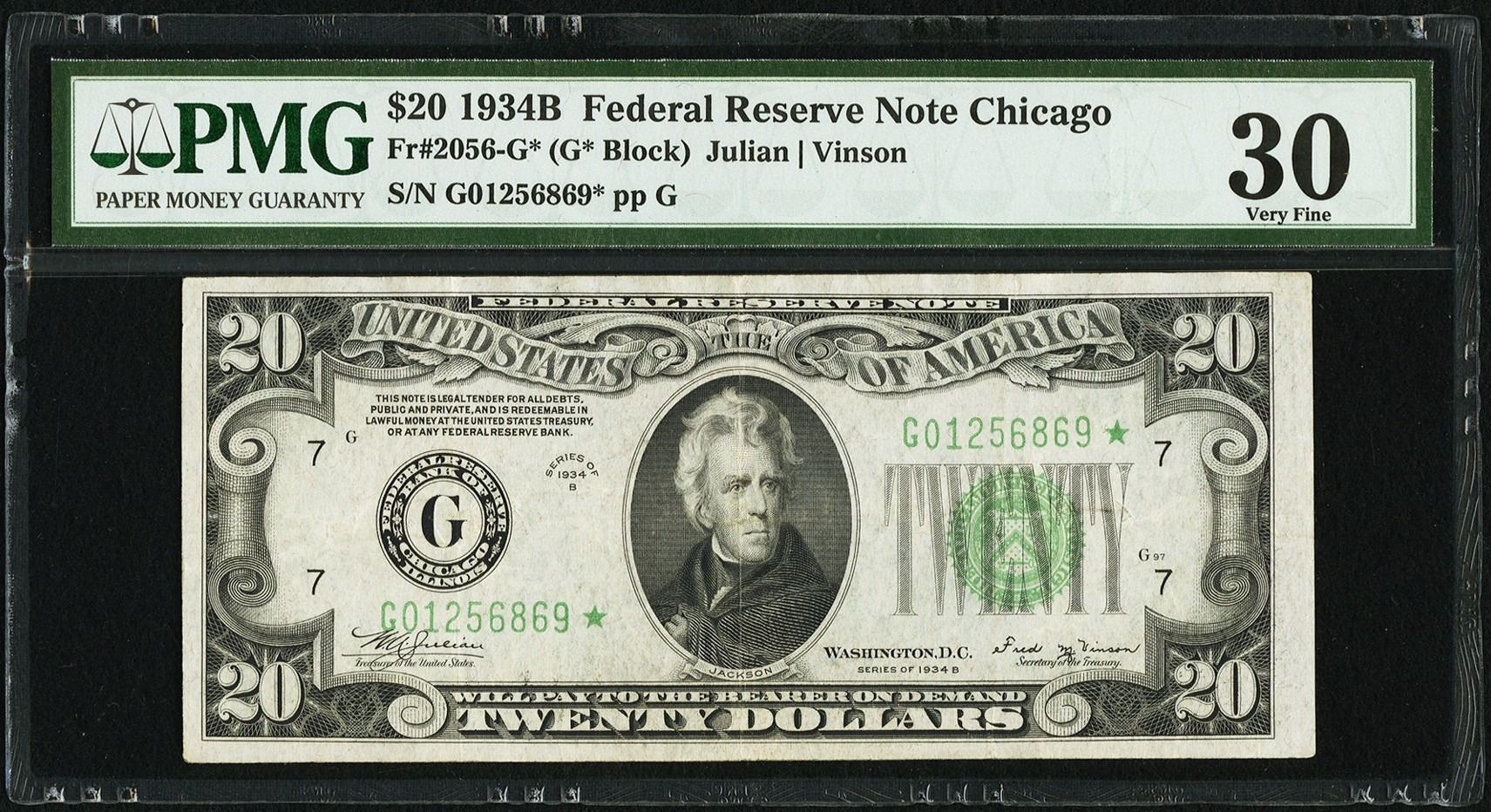One 1934B $20 Chicago Federal Reserve STAR Note PMG 30.
