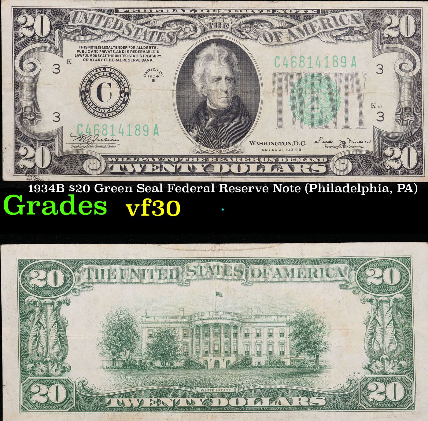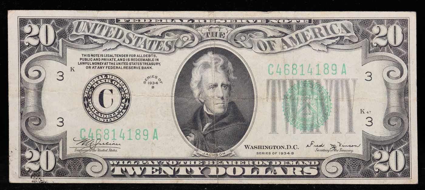 1934B $20 Green Seal Federal Reserve Note (Philadelphia, PA) Grades vf++.