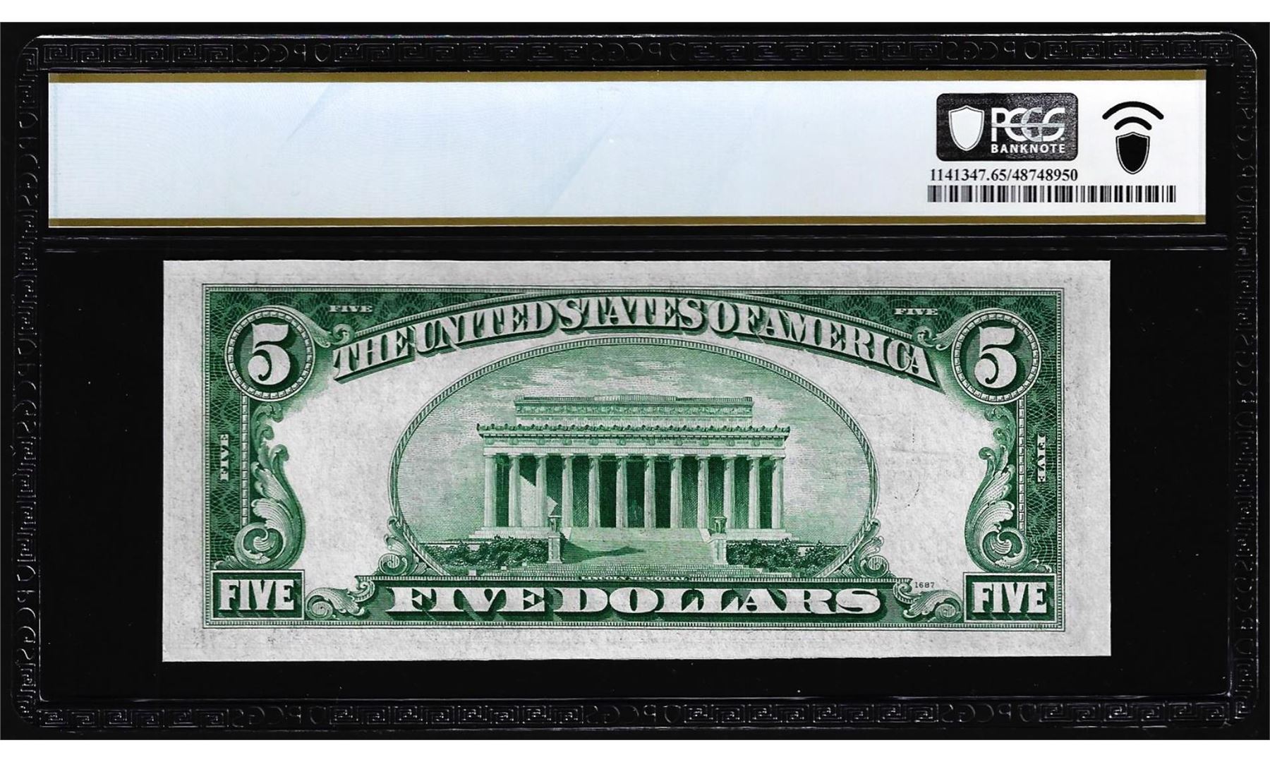 One 1934B $5 Silver Certificate Note Fr.1652 PCGS Gem Uncirculated 65PPQ. PCGS Graded.