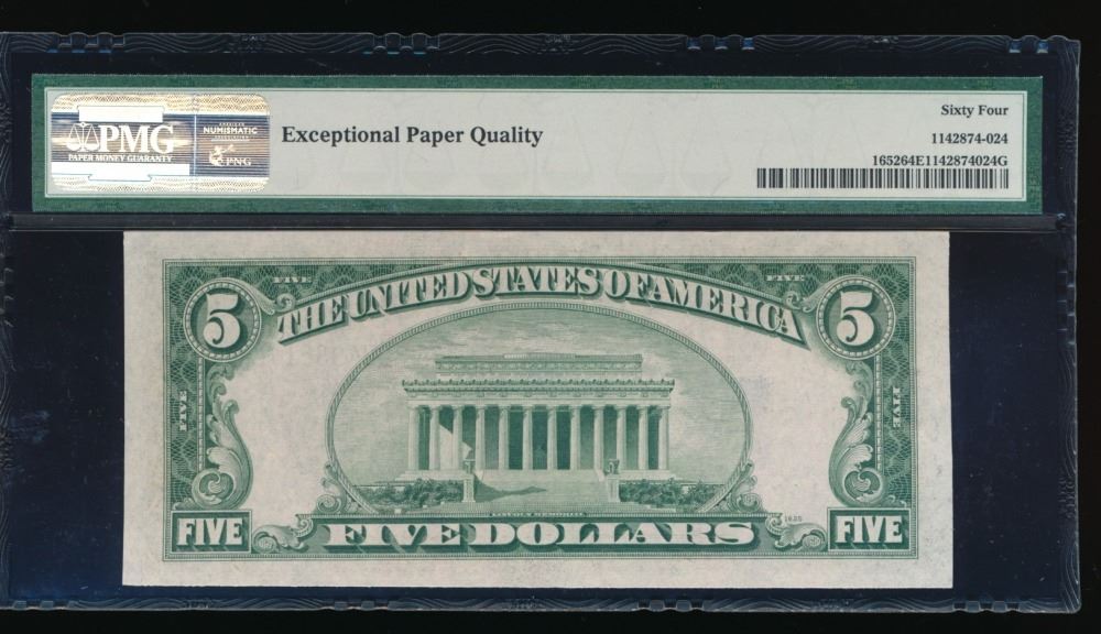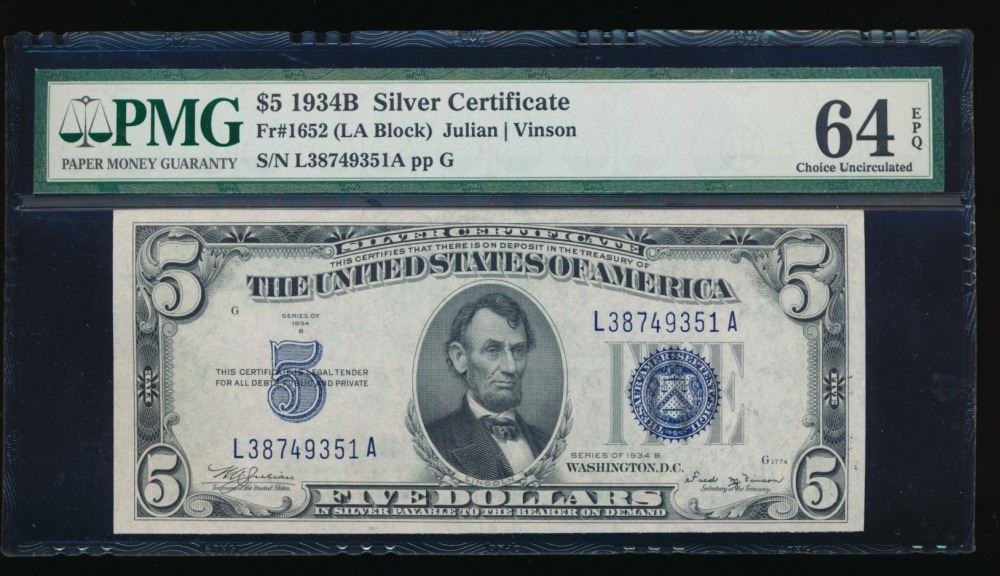 One 1934B $5 Silver Certificate PMG 64EPQ.