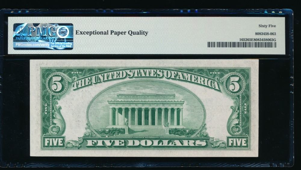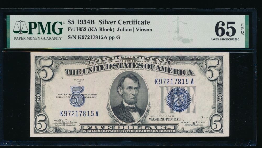 One 1934B $5 Silver Certificate PMG 65EPQ.