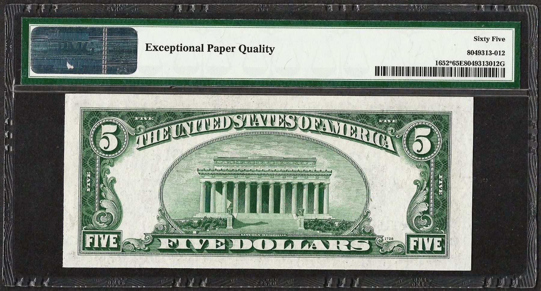 One 1934B $5 Silver Certificate STAR Note Fr.1652* PMG Gem Uncirculated 65EPQ.