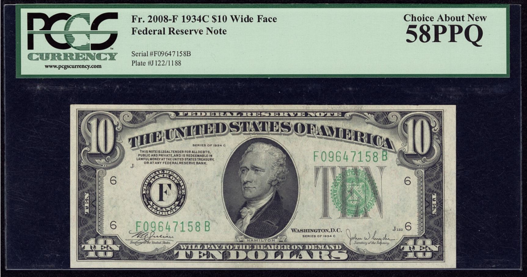 One 1934C $10 Atlanta Wide Face FRN PCGS 58PPQ.