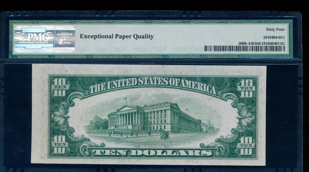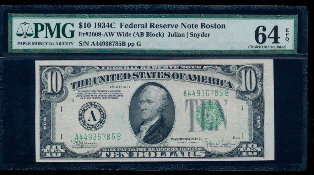One 1934C $10 Boston FRN PMG 64EPQ.