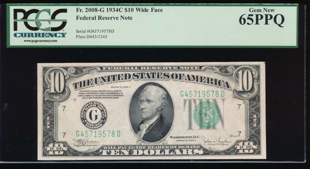 One 1934C $10 Chicago Federal Reserve Note PCGS 65PPQ.