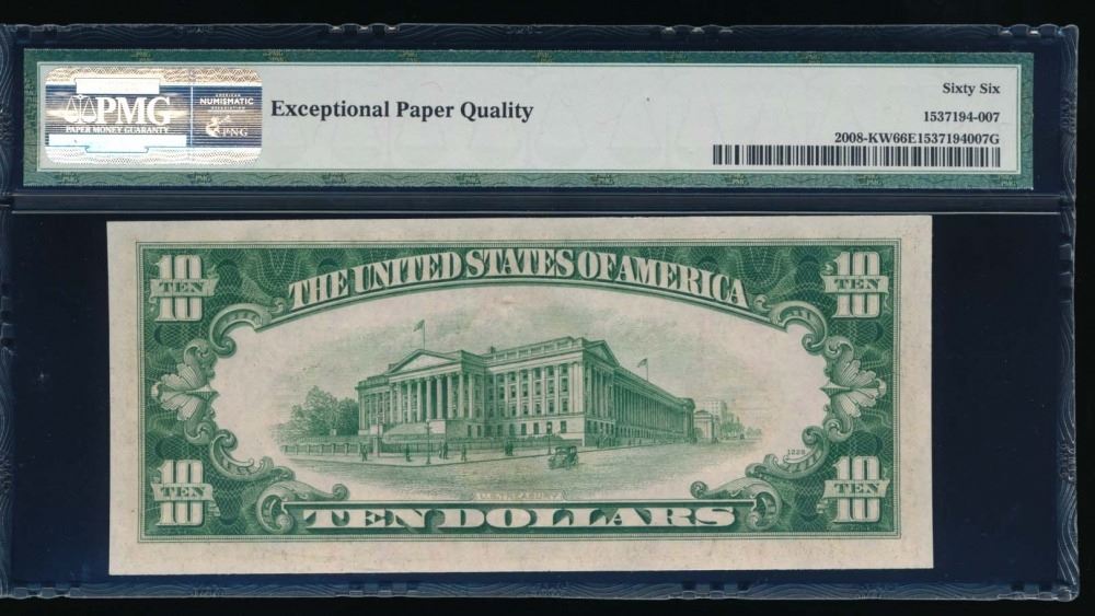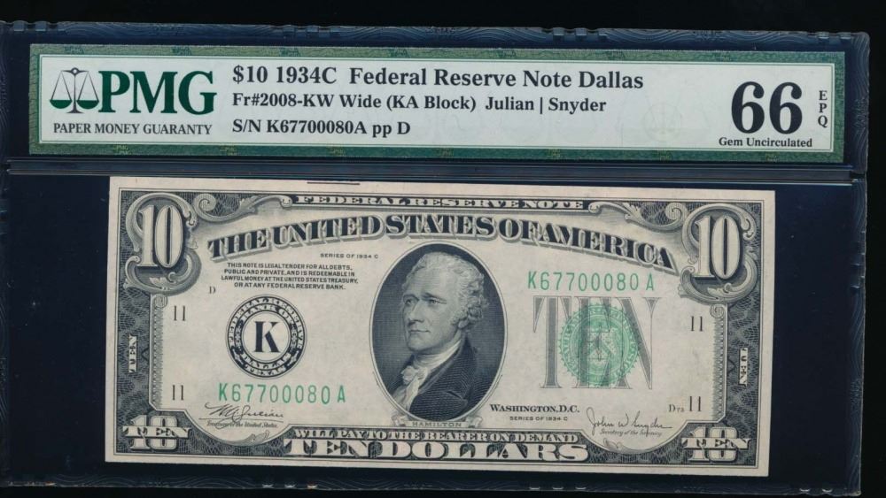 One 1934C $10 Dallas Federal Reserve Note PMG 66EPQ.