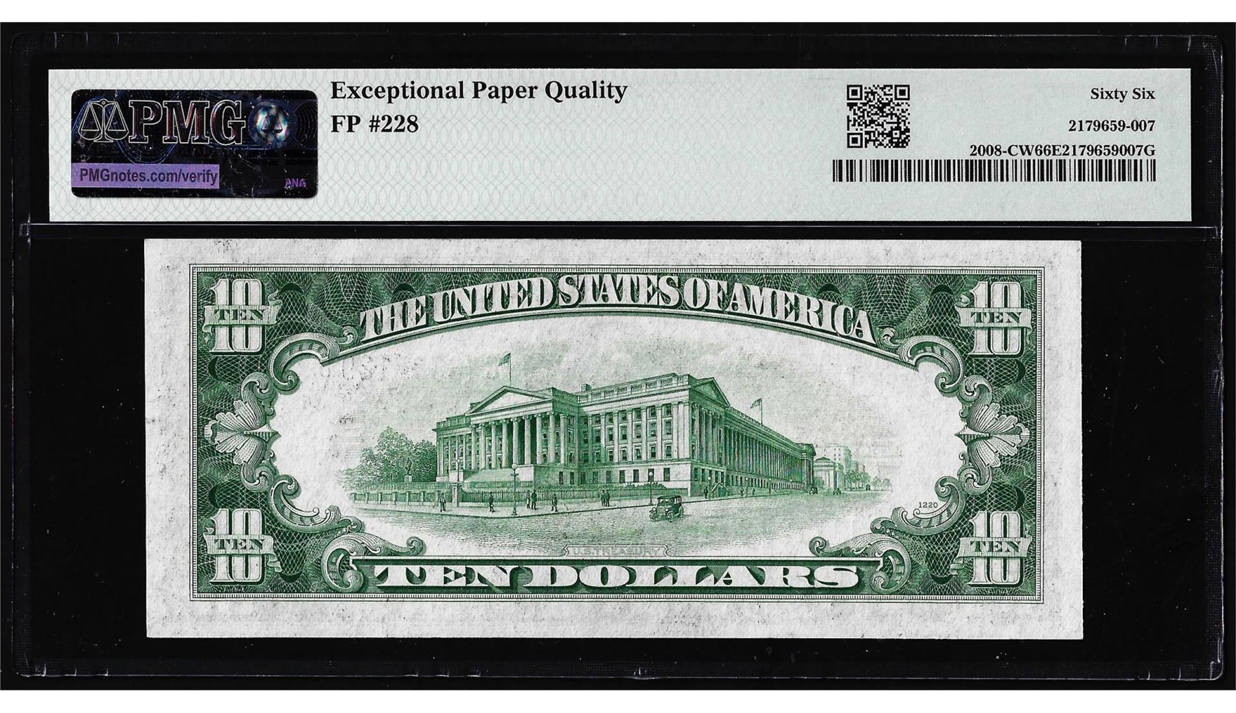 One 1934C $10 Federal Reserve Note Philadelphia Fr.2008-CW PMG Gem Uncirculated 66EPQ. PMG Certified.