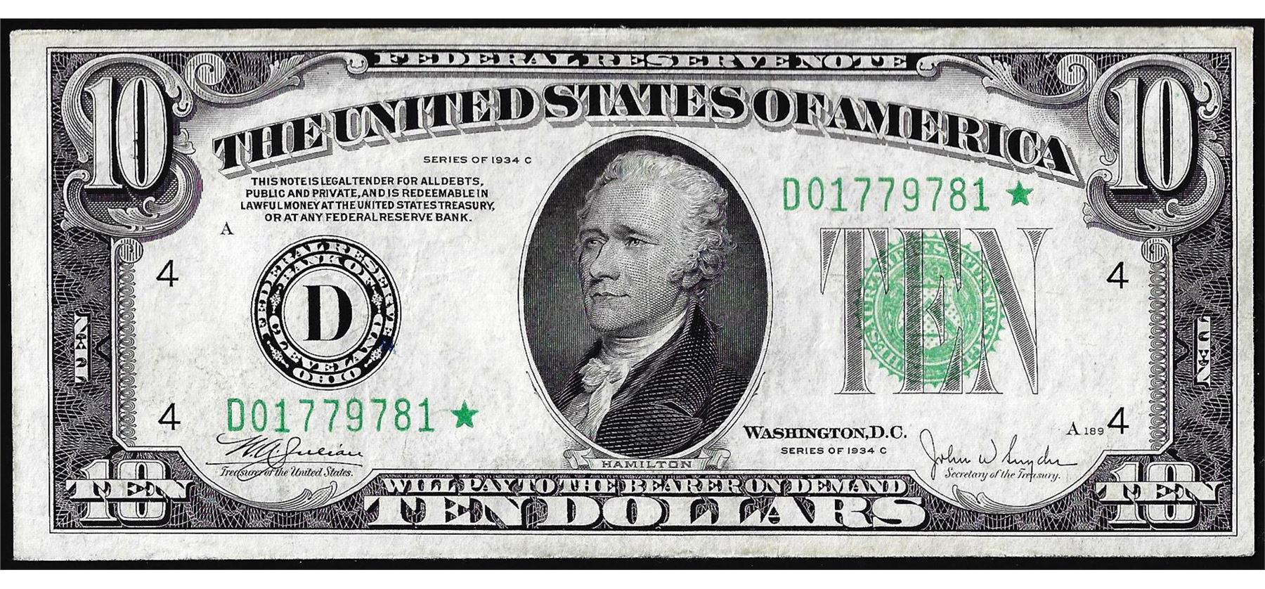 One 1934C $10 Federal Reserve Star Note Cleveland.