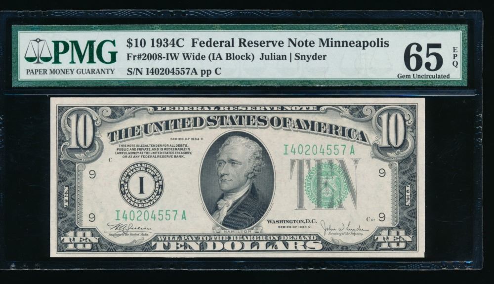 One 1934C $10 Minneapolis FRN PMG 65EPQ.