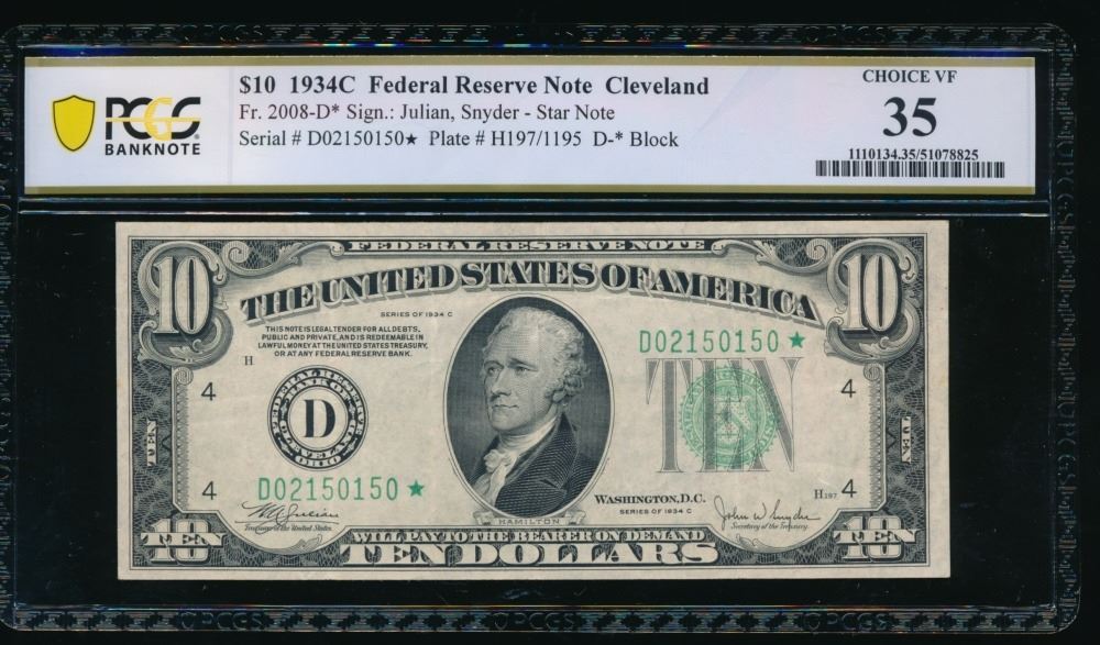 One 1934C $10 STAR Cleveland FRN PCGS 35.