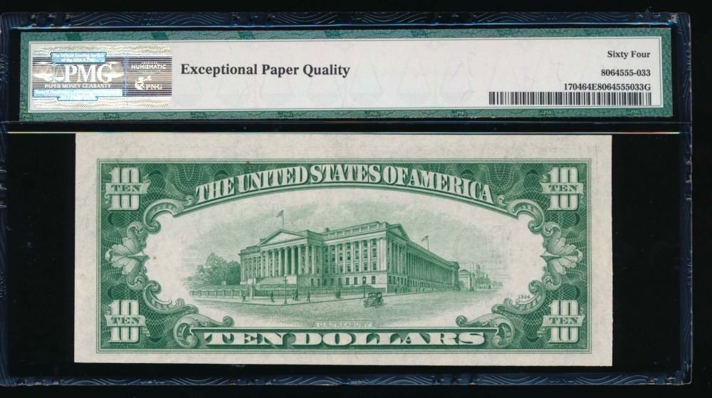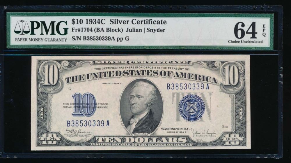 One 1934C $10 Silver Certificate PMG 64EPQ.