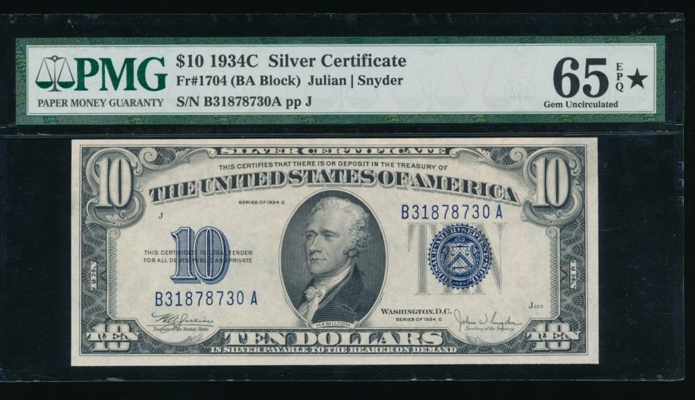 One 1934C $10 Silver Certificate PMG 65EPQ.