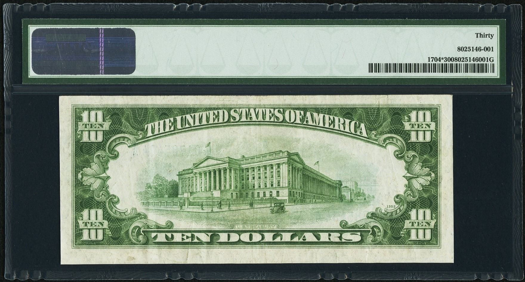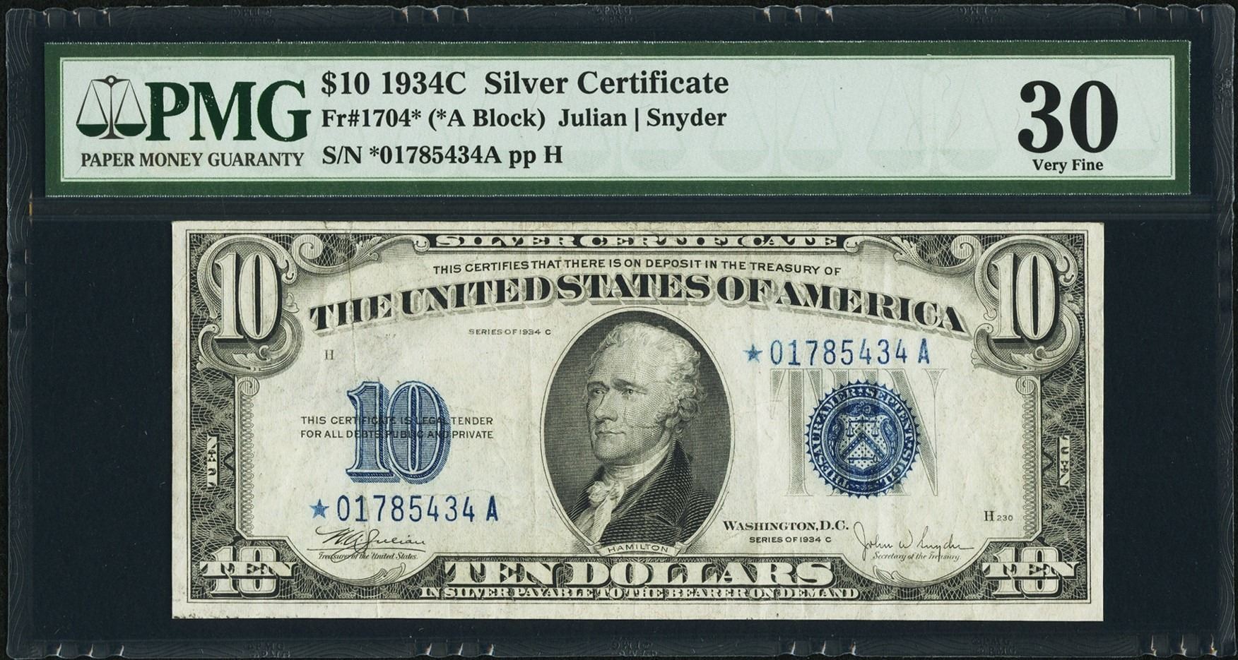 One 1934C $10 Silver Certificate STAR Note PMG 30.