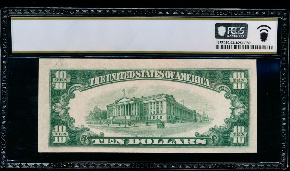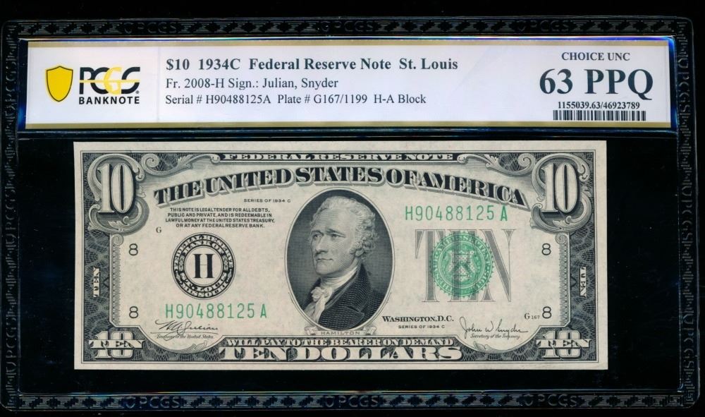 One 1934C $10 St Louis FRN PCGS 63PPQ.