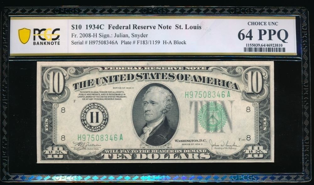 One 1934C $10 St Louis FRN PCGS 64PPQ.