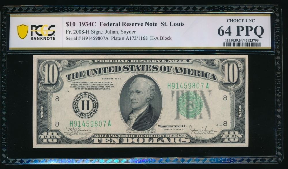 One 1934C $10 St Louis FRN PCGS 64PPQ.