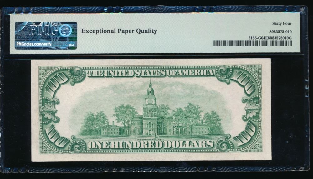 One 1934C $100 Chicago FRN PMG 64EPQ.