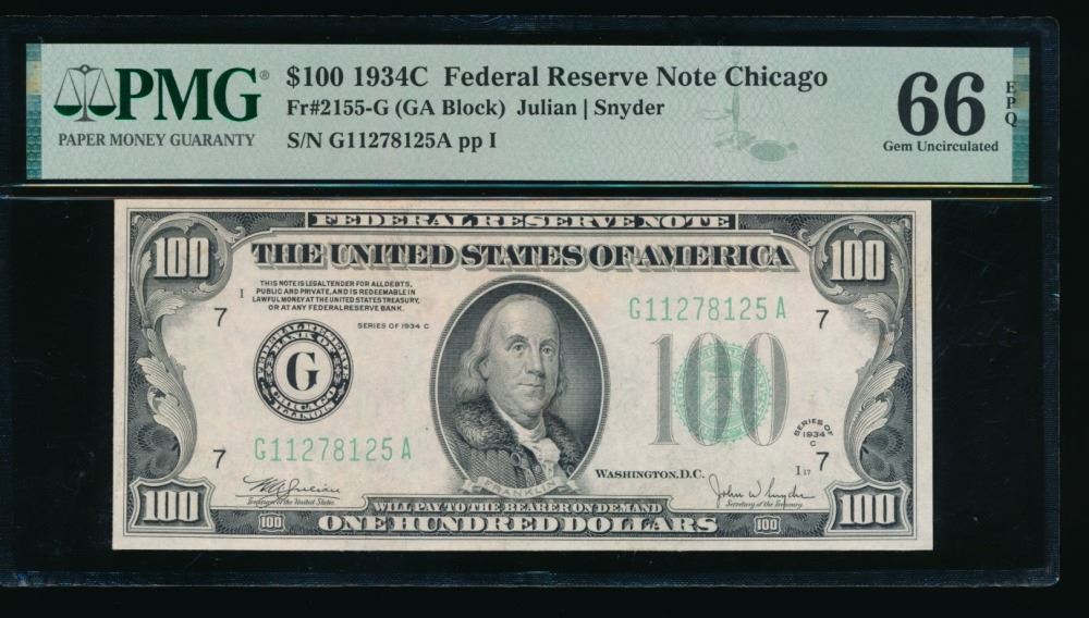 One 1934C $100 Chicago FRN PMG 66EPQ.