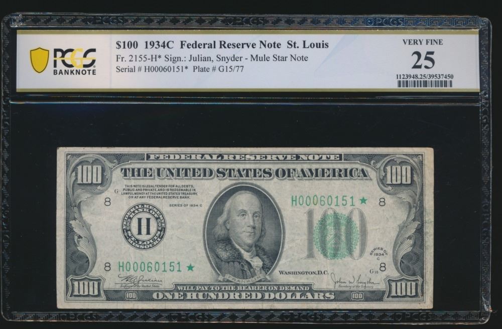 One 1934C $100 STAR St Louis FRN PCGS 25.