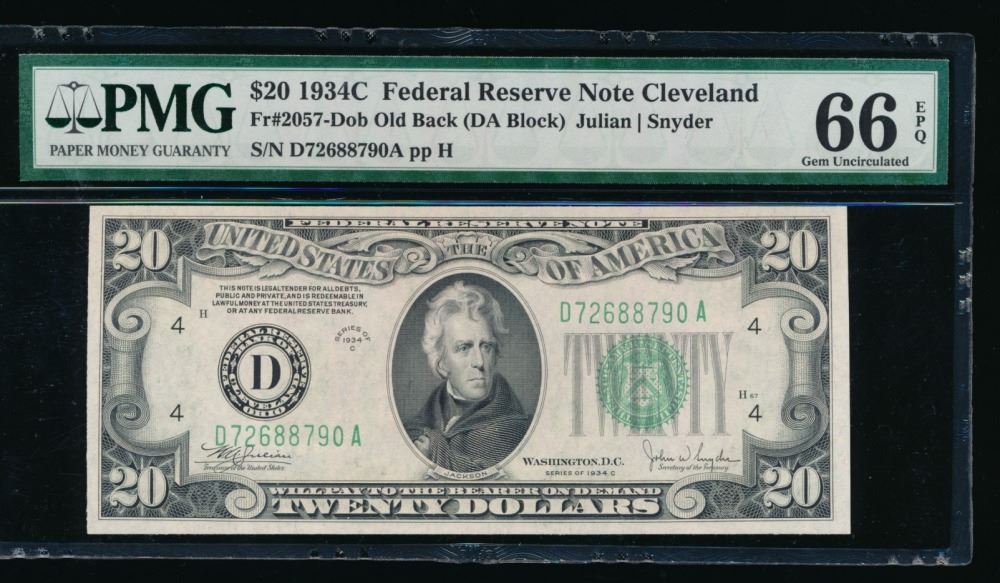 One 1934C $20 Cleveland FRN PMG 66EPQ.