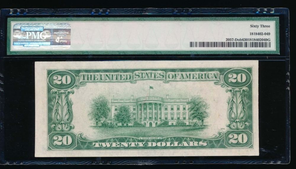 One 1934C $20 Cleveland Federal Reserve Note PMG 63.