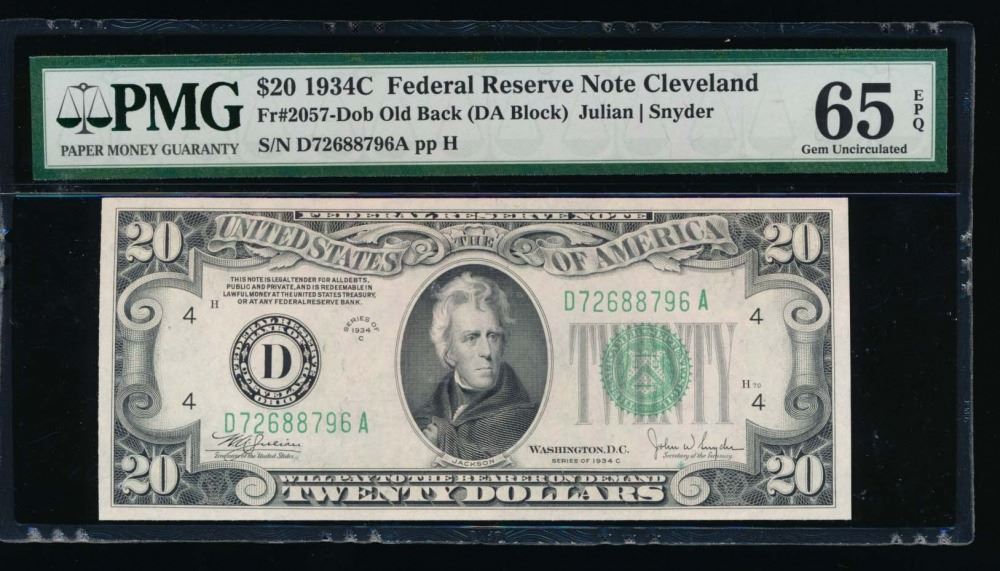 One 1934C $20 Cleveland Federal Reserve Note PMG 65EPQ.