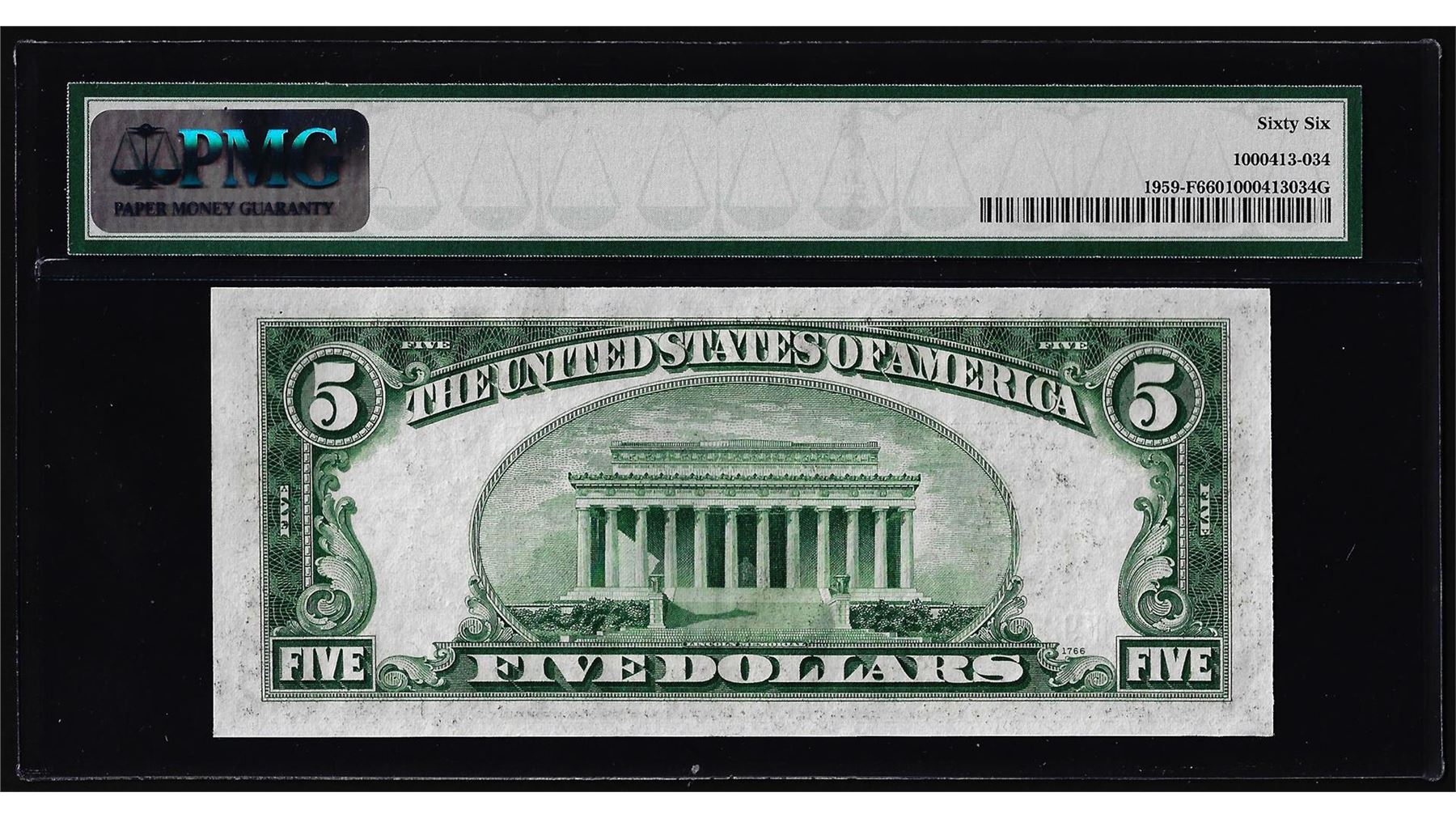 One 1934C $5 Federal Reserve Note Atlanta Fr.1959-F PMG Gem Uncirculated 66. PMG Certified.