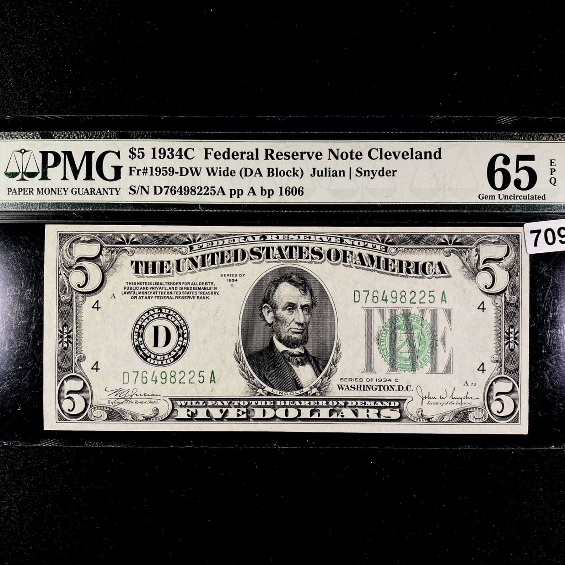 1934C $5 Federal Reserve Note Cleveland PMG-65