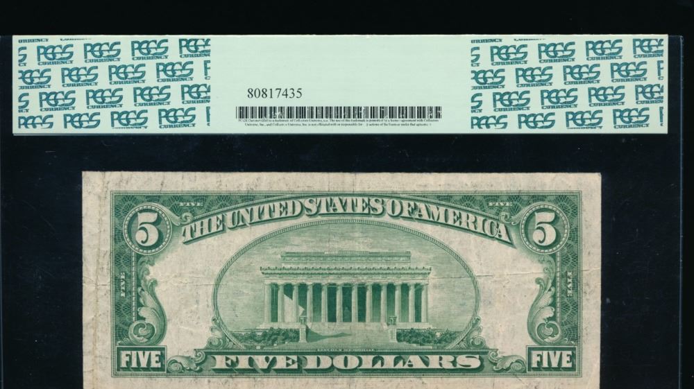 One 1934C $5 Mule Silver Certificate PCGS 20PPQ.