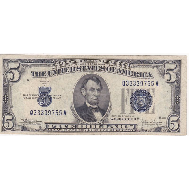 1934C $5 Silver Certificate, F-VF **|**|** 1934C $5 Silver Certificate, F-VF ; MSRP: $75