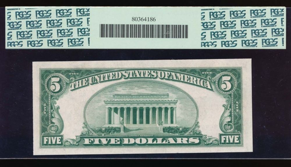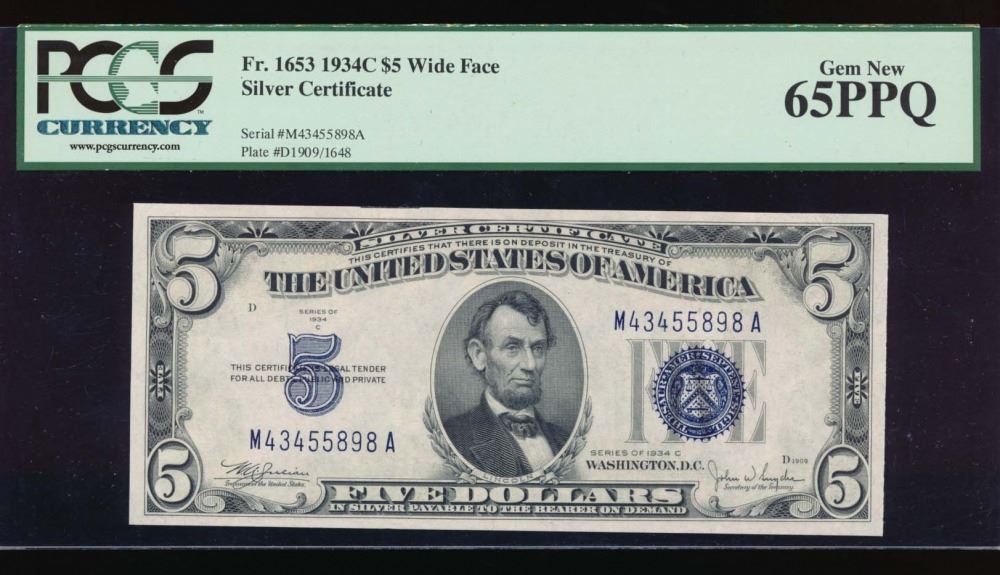 One 1934C $5 Silver Certificate PCGS 65PPQ.