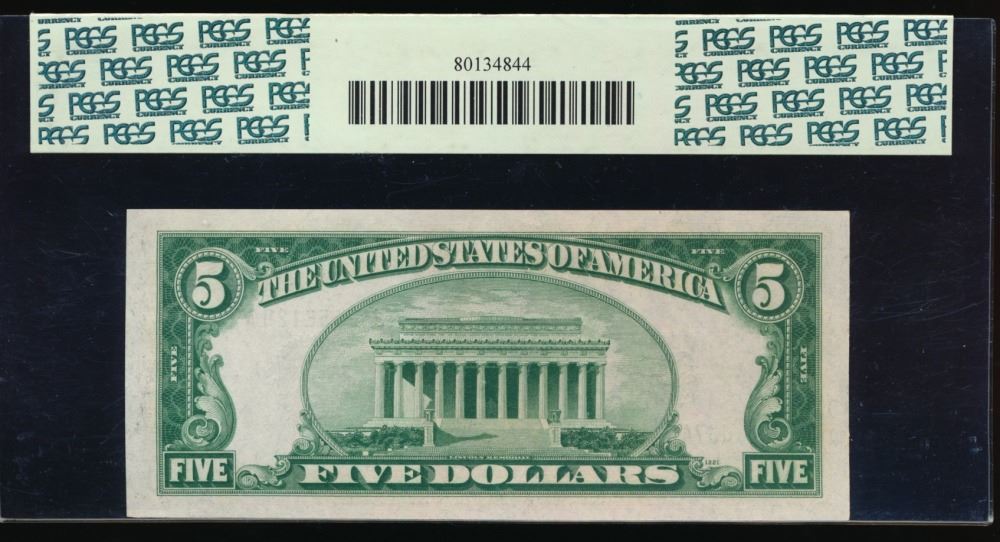 One 1934C $5 Silver Certificate PCGS 66PPQ.