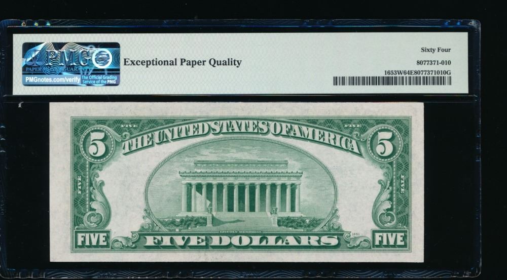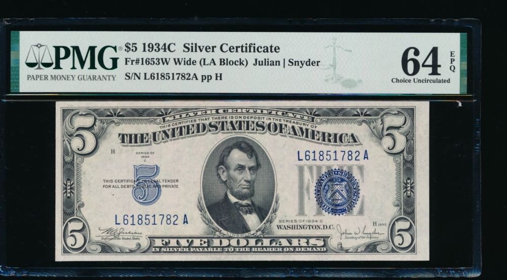 One 1934C $5 Silver Certificate PMG 64EPQ.