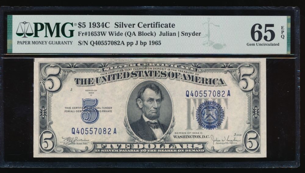 One 1934C $5 Silver Certificate PMG 65EPQ.