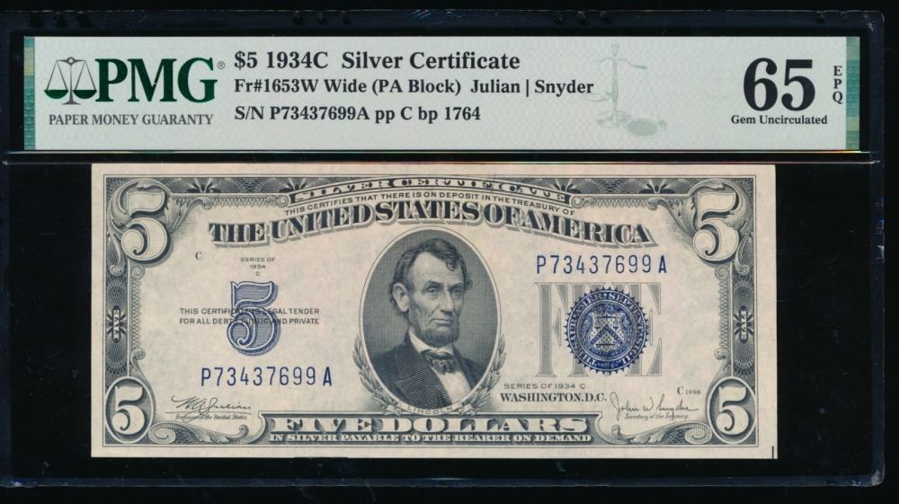 One 1934C $5 Silver Certificate PMG 65EPQ.