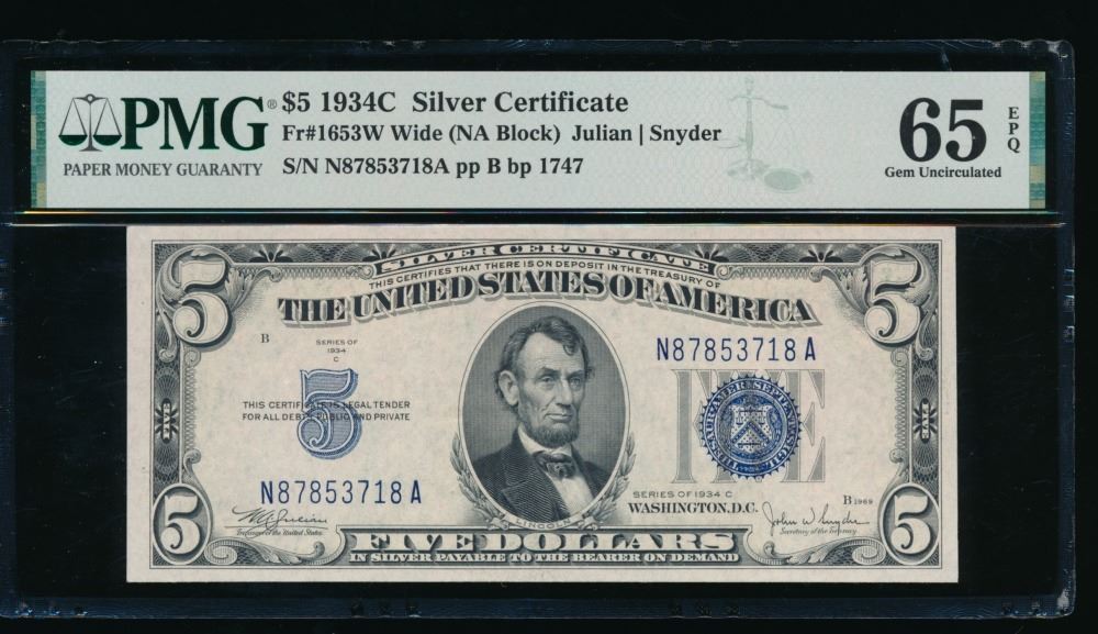 One 1934C $5 Silver Certificate PMG 65EPQ.