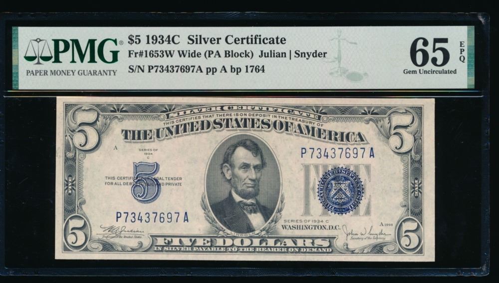 One 1934C $5 Silver Certificate PMG 65EPQ.